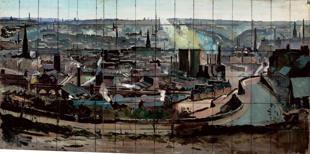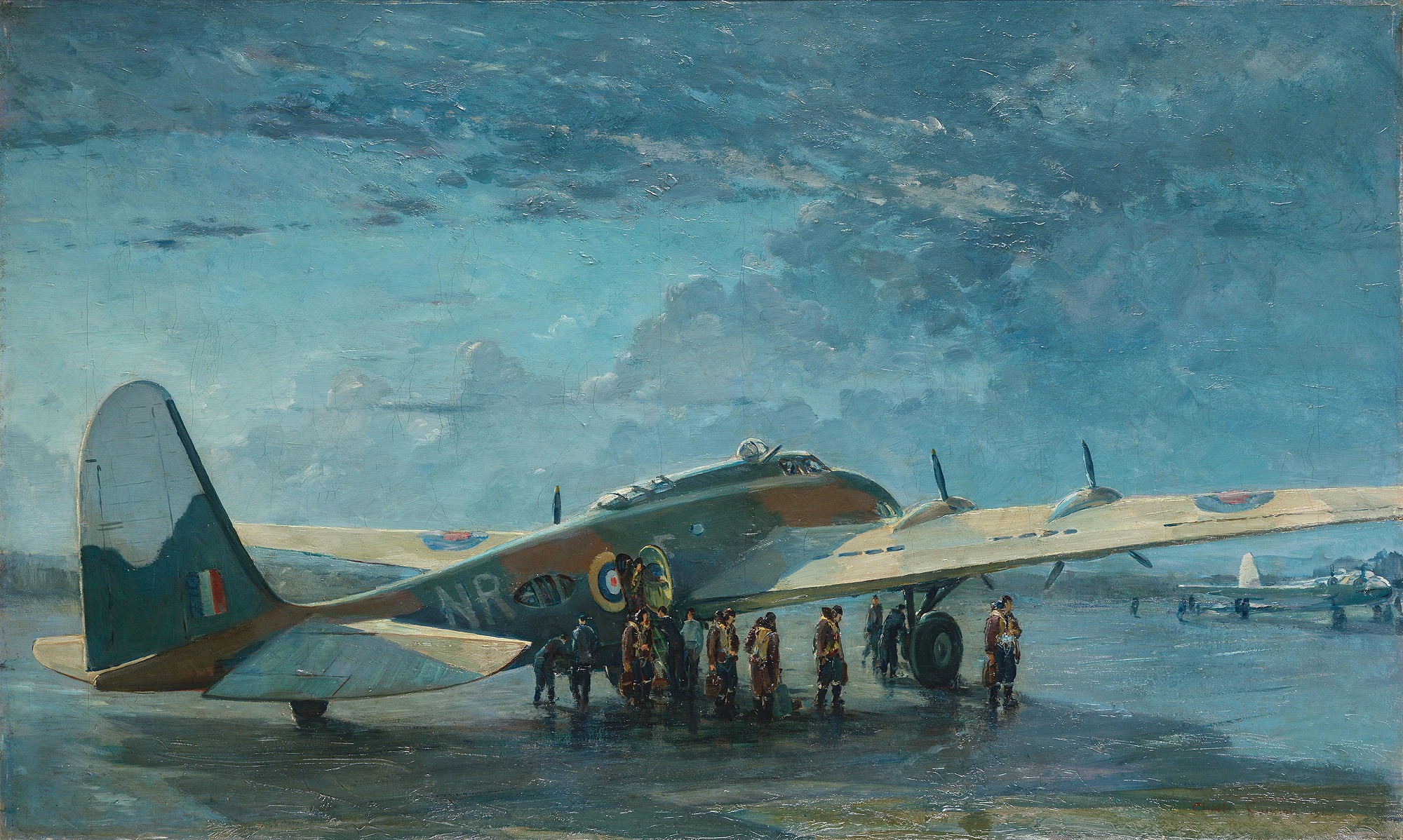 His technical facility – especially when working on large panoramic canvases – was remarkable. His pictures are rich with texture, light and movement. He was equally at ease with aerial views, landscapes, seascapes and cityscapes, and was a master of crowd scenes. His work as an Official War Artist has never received the attention it merits.