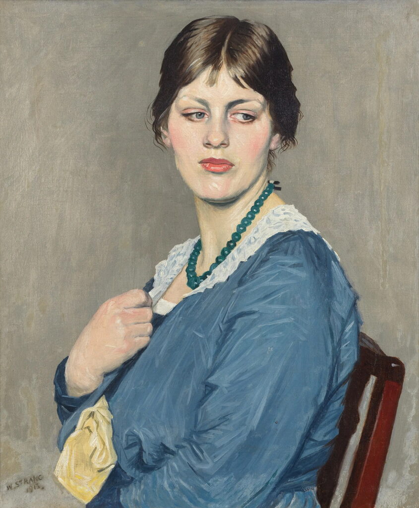 Born Dumbarton, 13 Feb 1859; died Bournemouth, 12 April 1921. Scottish painter and printmaker. Following a brief apprenticeship with a shipbuilding firm in Clydesdale, he entered the Slade School of Art (1876) where he adhered to the uncompromising realism advocated by his teacher Alphonse Legros. After completing his studies at the Slade (1880), Strang became Legros’s assistant in the printmaking class for a year. For the next 20 years he worked primarily as an etcher. His etchings include landscapes in the tradition of Rembrandt, pastoral themes indebted to Giorgione and macabre genre subjects, marked by a sense of tension and suspended animation. He also etched 150 portraits of leading artistic and literary figures. The commitment to realism and psychological intensity that characterizes the best of Strang’s etched work is also evident in the paintings that dominated the latter half of his career. The influence of the Belgian and French Symbolists’ work and Strang’s growing confidence in the handling of colour combined in his mature style with a linear clarity and schematic colouring that is best seen in such works as Bank Holiday (1912; London, Tate). His oil portraits, for example Vita Sackville-West as Lady In a Red Hat (1918; Glasgow, A.G. & Mus.), are strikingly potent images of their time. An important collection of Strang’s graphic work is in the Art Gallery and Museum in Glasgow. His sons Ian Strang (1886’1952) and David Strang (born 1887) were also printmakers.