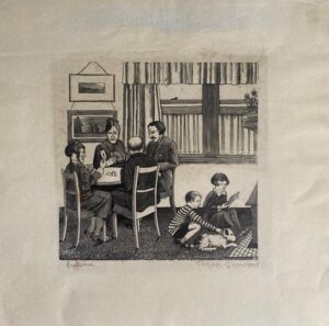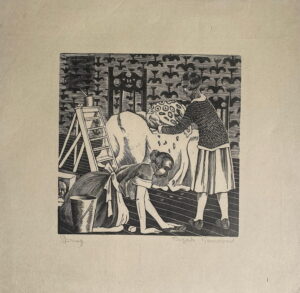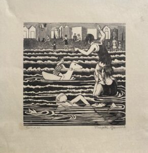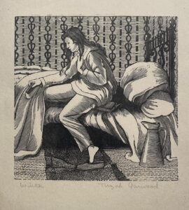 The present suite were the first of Garwood’s engravings to be accepted by the Society of Wood Engravers for its annual exhibition in 1927. Garwood’s works were praised by the Times, whose critic noted her “cool, satirical eye”.